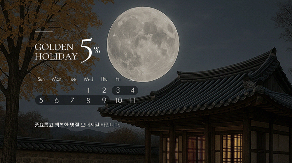 - 10월 황금연휴, 전 제품 5% 할인 혜택 제공