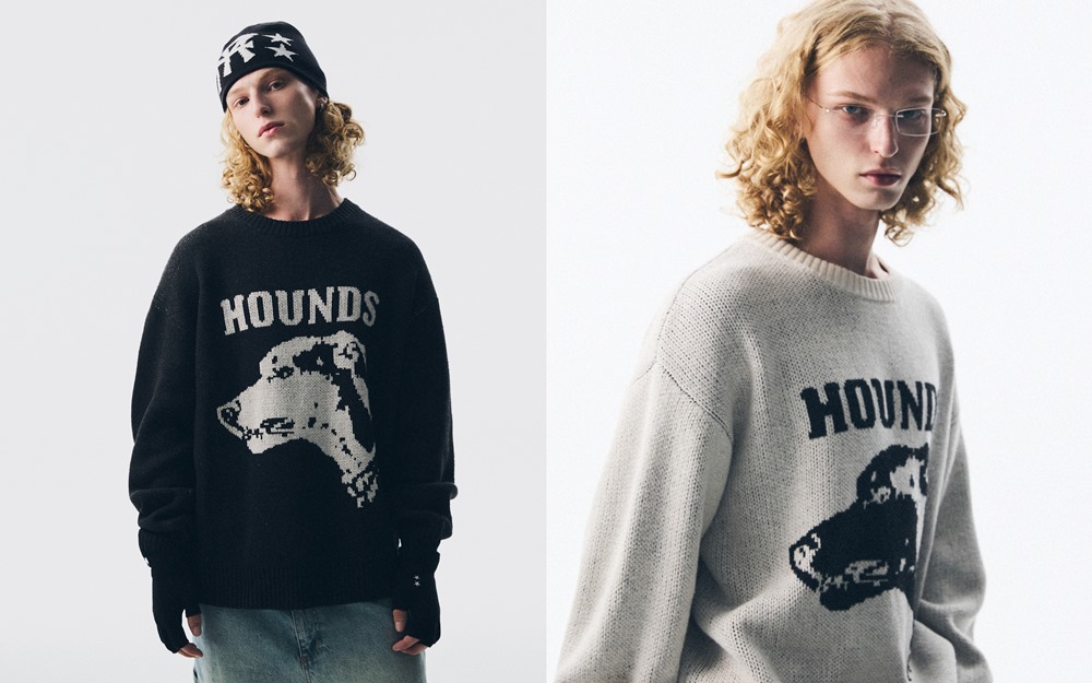 먼저, 하운드 자카드 니트는 전면의 큼직한 ‘HOUNDS’ 그래픽이 시선을 사로잡는 아이템이다.