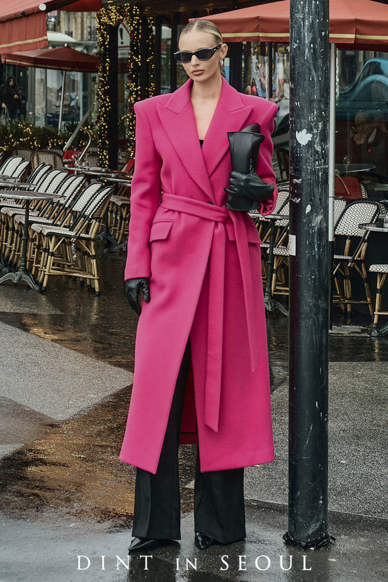 롱한 기장감이 만들어내는 유려한 실루엣과 센스 있는 디자인이 어우러져, 파리의 차분한 거리 위에서 더욱 깊이 있는 무드를 전한다.